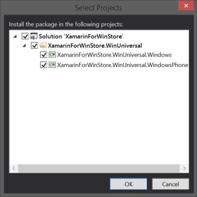 Now you can add support for Windows Universal projects. First you need to add a new Windows Universal project to your solution. If you don't want to support Windows Phone 8.0, remove the Windows Phone 8 project created with the Xamarin.Forms template.