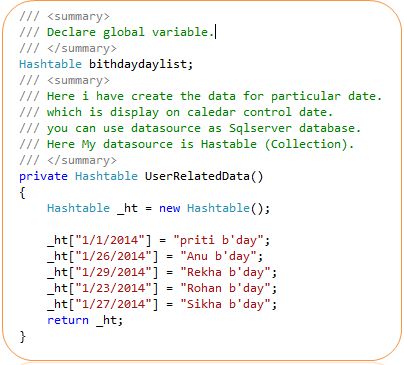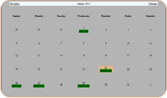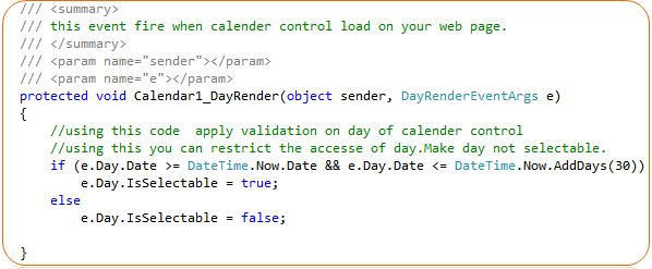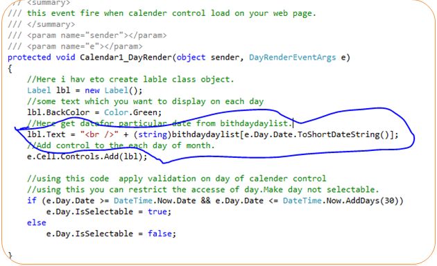 4. How to restrict access of the month(s) date (apply validation)5. How to add user-specific data to the Calendar control