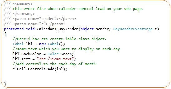 2. How to dynamically add another (ASP.NET) control (like Label, TextBox and so on) in a Calendar control