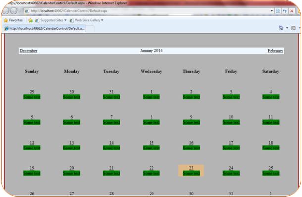 Here, I would like to describe the most usefull properties of the Calendar control in ASP.NET. I will also describe how to add custom and user related data to a calendar control. I will describe that below.