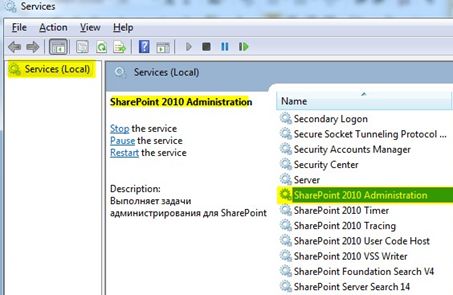 Go to "Control Panel -> Administrative tools -> Services", select SharePoint 2010 Administration and start it. Check the figure below.