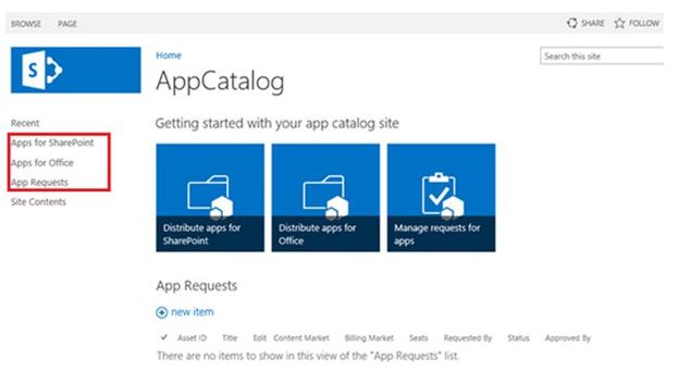 This article shows how to set up an app catalog in SharePoint 2013 Online. To do this you must have access to an Office 365 Developer Site. Here are three ways to get one: