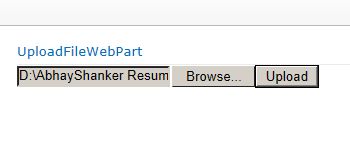 This article explains how to upload a file in a Document Library.In SharePoint, library files are uploaded using the Add method on the Files property of a SPWeb like this:SPContext.Current.Web.Files.Add(docLibrary.RootFolder.Url + "/" + fileUpload.FileName, contents);I have created a webpart that uploads a file provided by the user to a SharePoint library.Use the following procedure to create a sample of doing it.1. Create an empty SharePoint project and add a webpart. 2. Modify the code as below:
