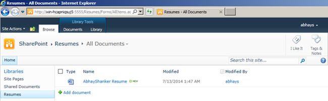 3. Build the solution and deploy.4. Go to the Site Page library and create a page as in the following:5. Add the Webpart.6. Try to upload a document in the library. You will get the error as below:7. Edit the webpart and fill in the name of the Document Library where you want to add the document through this page's webpart.8. Now upload a file.9. Navigate to the Document Library. You will find your uploaded document in the library.ConclusionThis article explained how to upload a document in a Document Library using a custom webpart property.