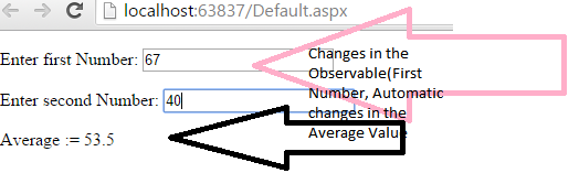 If we change in the first Observable then the Computed Observable, the Average value, is automatically changed, that indicates that the Computed Observable is dependent on the observables.