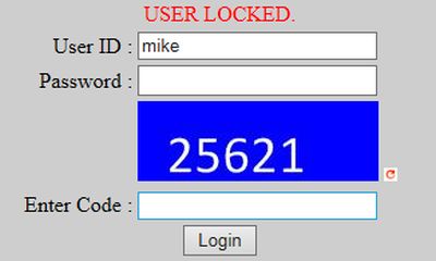 If the user has more than five incorrect login attempts, then the user is locked as in the following.