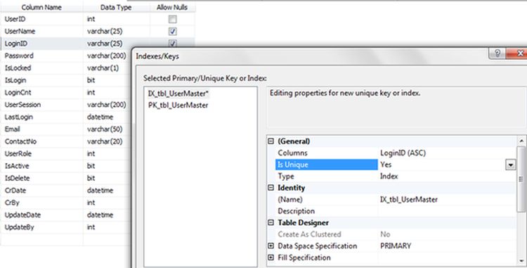 I have added many columns to the introductory UserMaster Table to integrate a standard login policy.