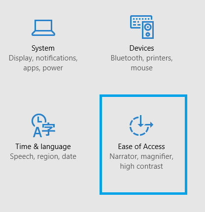 After clicking on Settings you will get a new window, click on Ease of Access.