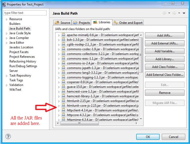 - Now all the required jar files are added under the Libraries Tab. Now click on Okay.