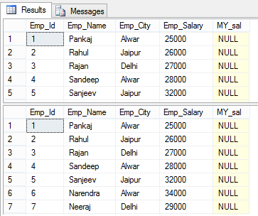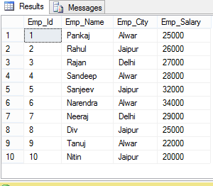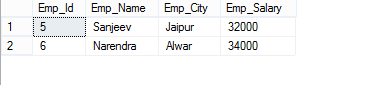 Insert Into Employee_Details Values('Pankaj','Alwar',25000)