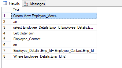 We can retrieve all the information of a view using the Sp_Helptext system Stored Procedure. Let us see an example.