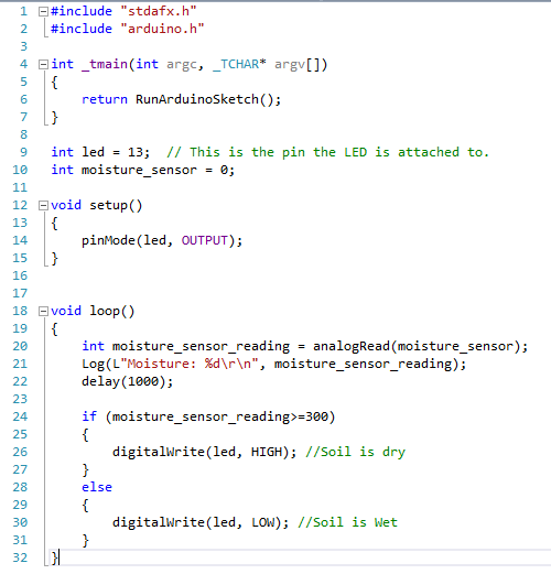 The code is written in C++ with Visual Studio that will deploy on Intel Galileo running on Windows.
