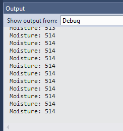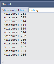 Depending on the code, the sensor data is received by the A0 pin. However any analog I/O pin can do the task. My sensor was showing values above 300 when the soil is moist and above 500 when it is completely dry but when I place it in water the values drops to 100. Here I have attached an LED to alert us when the soil becomes dry or you can do something else with your Advanced Gardening System to alert you that the plant needs water. Also, I have noticed that different sensors give different values. So perhaps the values for Dry, Moist and Wet soil will be different from mine but you can always play with the values and tabulate them. After a few samples, you can finally determine the values for each condition of moisture with your sensor.