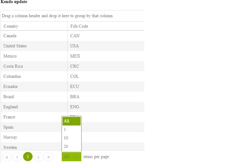 All options in the paging toolbar is one of the added features in Kendo Grid where the user can get all records in a single page.