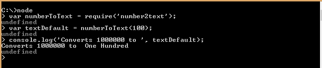 - var textDefault = numberToText(100); //it converts to default type i.e. Indian