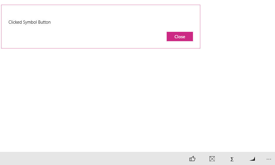 - btnSymbol.Click += (e, f) => { ShowMessage("Clicked Symbol Button"); };