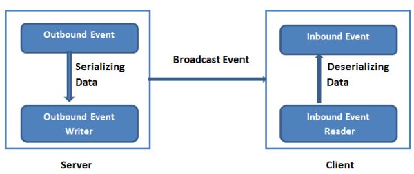 Now to the client-side, InboundEvent is responsible for handling the incoming data from the server and as for readability InbounEventReader is used to deserialize the data.