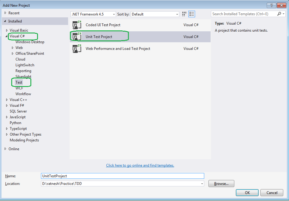 Create a blank solution and add a Class library as LibTDD. Now add a new unit test project to the solution file. It will add a class file to our unit test project as in the following: