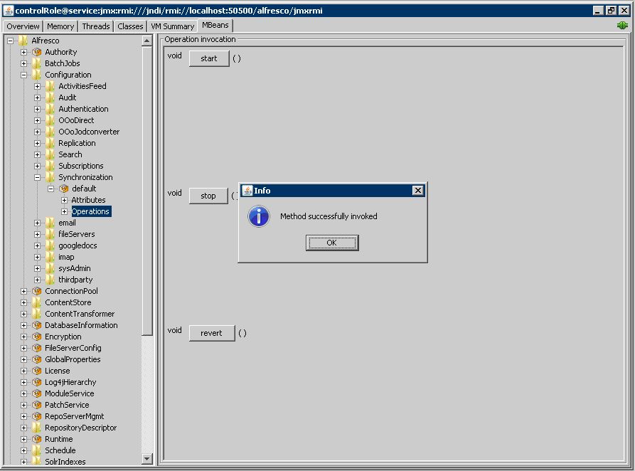 Step 3: Click the MBeans tab and expand AlfrescoàConfiguration in the tree control.