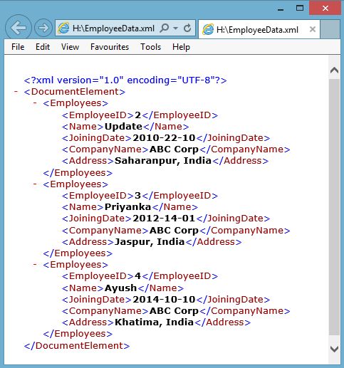 - doc.Save("H:\\EmployeeData.xml");
