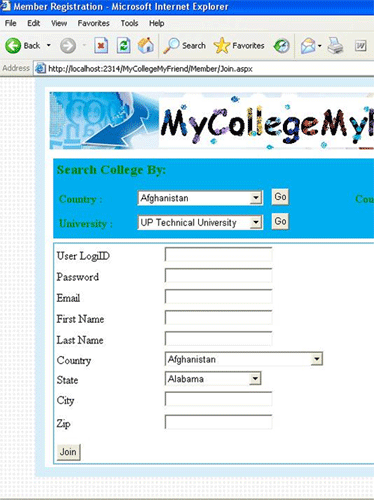 Here user can register themselves. User can see college, university and other member profile. Registered user can make their friend network by adding member in his/her friend list.