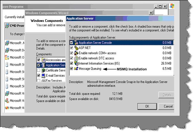 In order to use MSMQ you need to install the Message queuing by click on Install windows component and selecting MSMQ queuing. Once that done we are all set to make our sample of MSMQ using WCF.