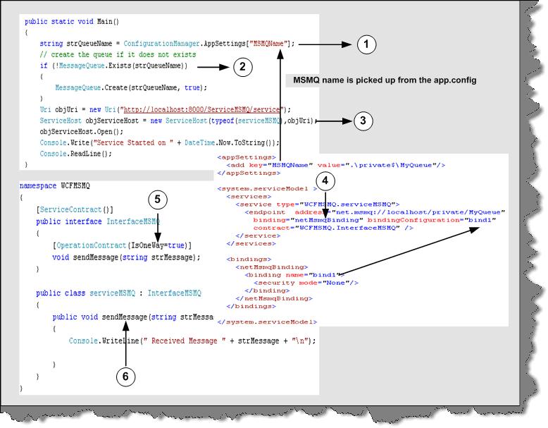 3 - First thing which should surprise you is why we are creating a URI with HTTP protocol as we are going to use MSMQ. Ok! This is bit tricky but fun. As we know in order to connect to this service, we need to generate a client proxy using SVCUTIL. Therefore, this URI will help us do that. It is not actually used by the client to connect.