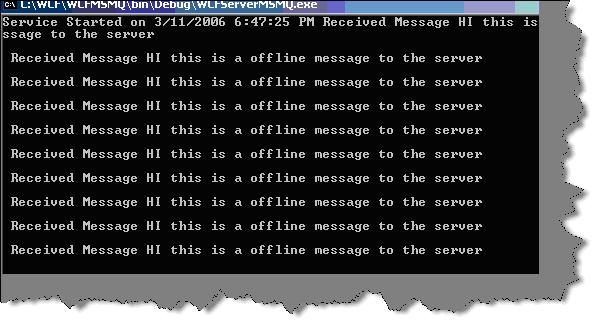 This sample will be simple. We send some messages from the client and keep the server down. As the server is down it will make postings to the MSMQ server. Then we will run the server service and service should pick up the message and display the same.